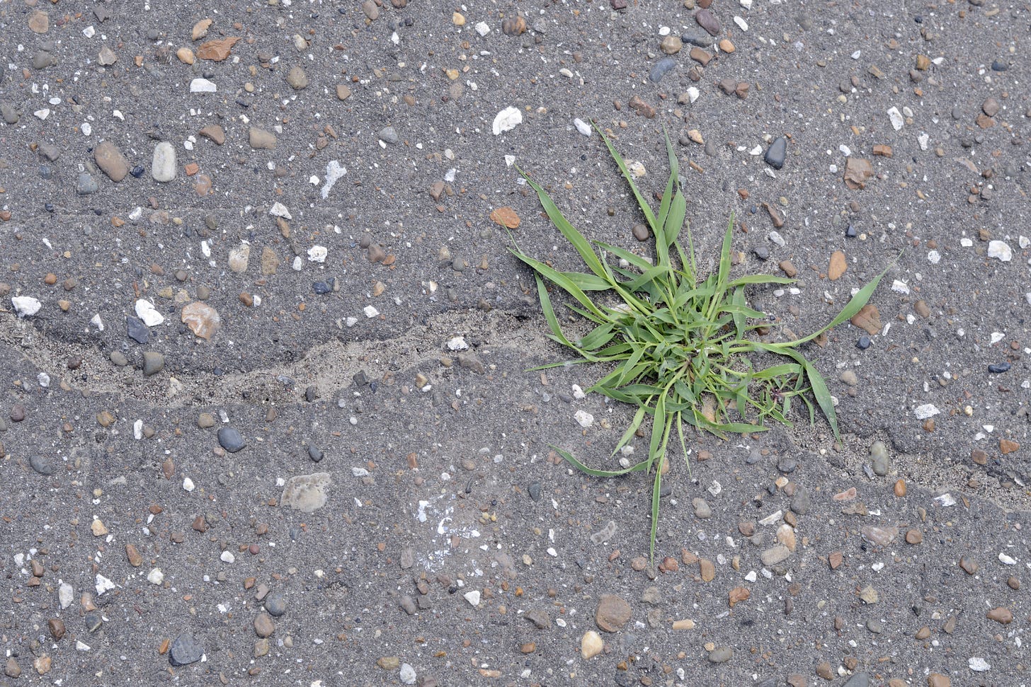 Observe uma planta que cresceu fora do lugar esperado. Um mato na calçada. Uma planta espontânea. Algo que nasceu sem permissão.